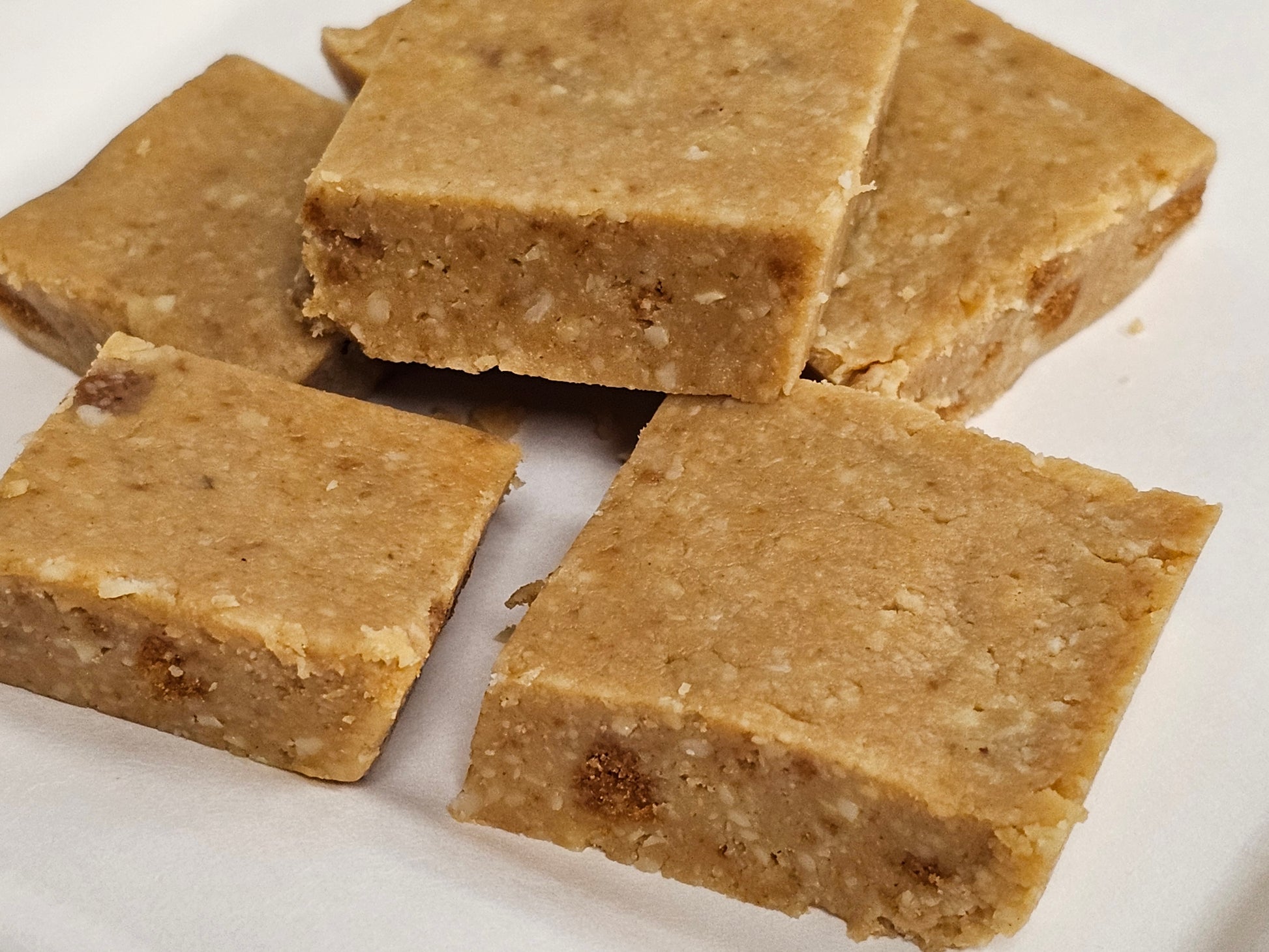 Sweet made from kaju (cashew), sugar, & biscoff biscuits